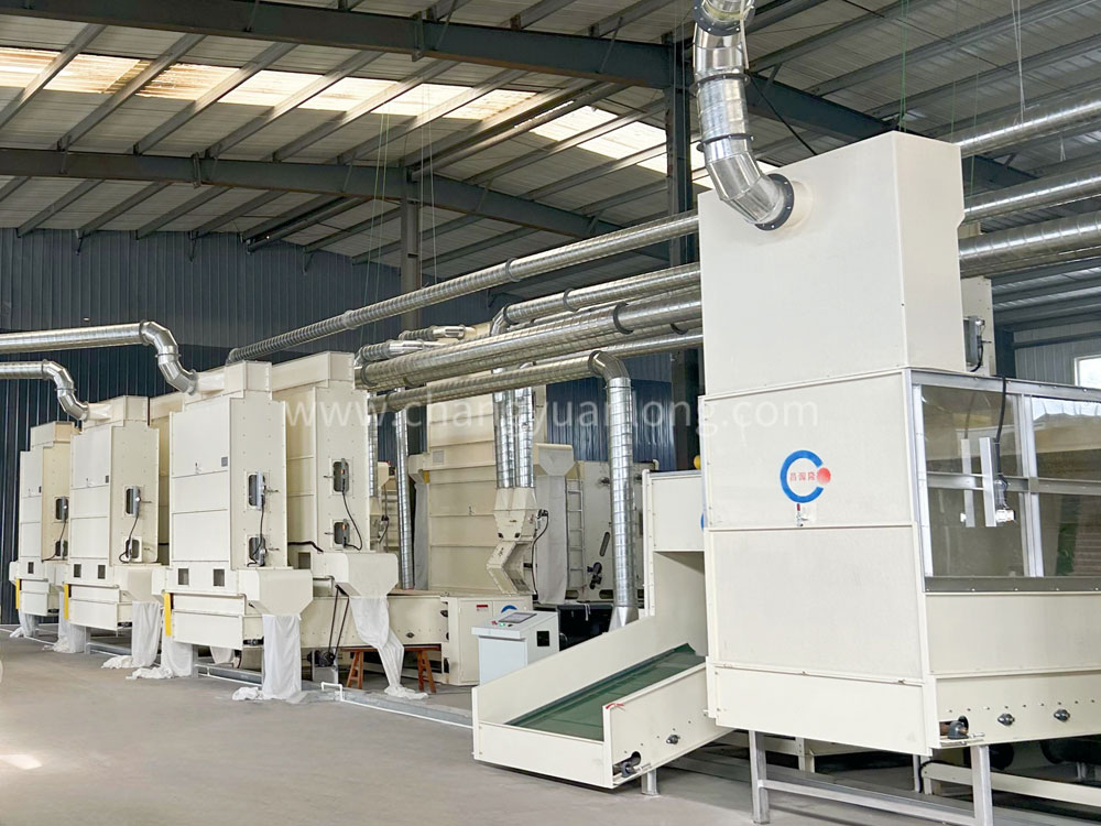 1. CYKB-1200 开包机:开松各种捆包纤维,按比例由电子秤进行称量,均匀平铺在混棉帘上。各种不同纤维被放入水平输送帘,经压棉辊和对辊罗拉喂入,经高速打手开松后由输棉风机送到下道工序。